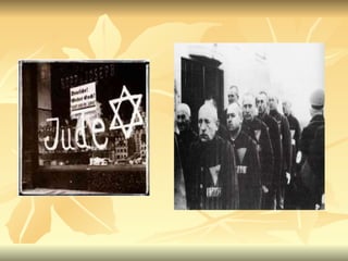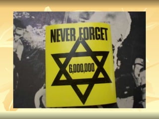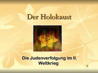 Das Dokument behandelt den Holocaust, der das systematische Vernichten von etwa 6 Millionen Juden während des Zweiten Weltkriegs beschreibt. Es erläutert die Anfänge der Judenverfolgung, die Nürnberger Gesetze, die Einrichtung von Ghettos sowie Konzentrationslagern, in denen unzählige Menschen getötet wurden. Die Zahl der Opfer umfasst auch andere Gruppen, die unter dem nationalsozialistischen Regime litten.