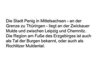Das Hotel zur Lochmühle in Penig, Sachsen, bietet eine ruhige Lage an der Zwickauer Mulde, zahlreiche Freizeitmöglichkeiten wie Radwanderungen und einen Fahrradverleih. Die Unterkunft verfügt über 22 Zimmer, ein Restaurant mit regionaler Küche und ein Biergarten, ideal für Ausflüge nach Chemnitz, Leipzig und in die umliegenden Burgenlandschaften. Neben Übernachtungsangeboten werden auch organisierte Tagesausflüge und verschiedene Urlaubsarrangements angeboten.