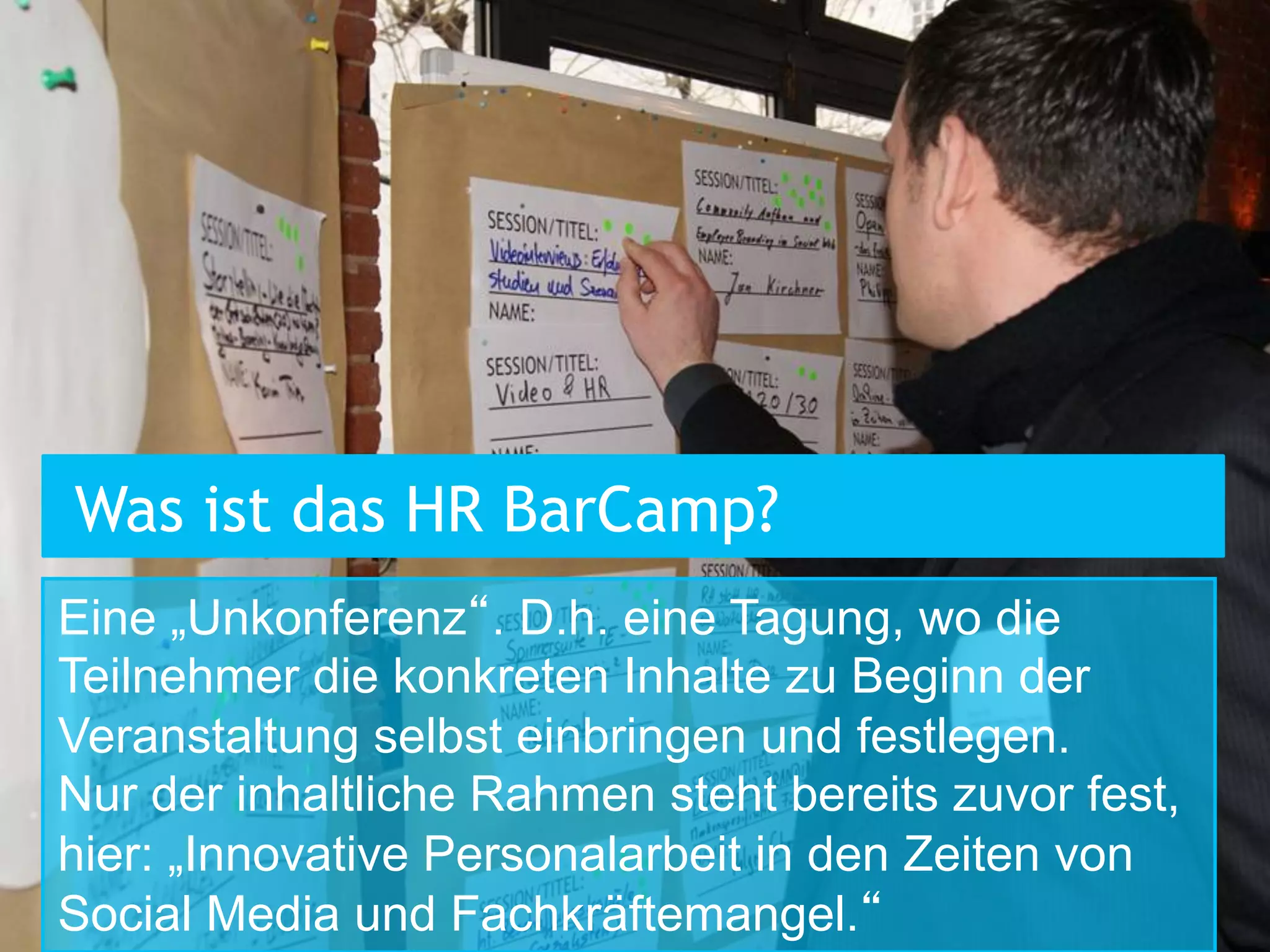 Das HR Barcamp ist eine 'unkonferenz', bei der Teilnehmer zu Beginn selbst Themen vorschlagen und auswählen, um innovative Human Resources Themen zu erörtern. Der Ablauf beinhaltet die Themenfindung, Abstimmung sowie die Durchführung von Sessions, die einen Dialog und Austausch fördern sollen. Das Event findet am 6./7. März 2014 in Berlin statt und ist kostengünstig und nicht-kommerziell.