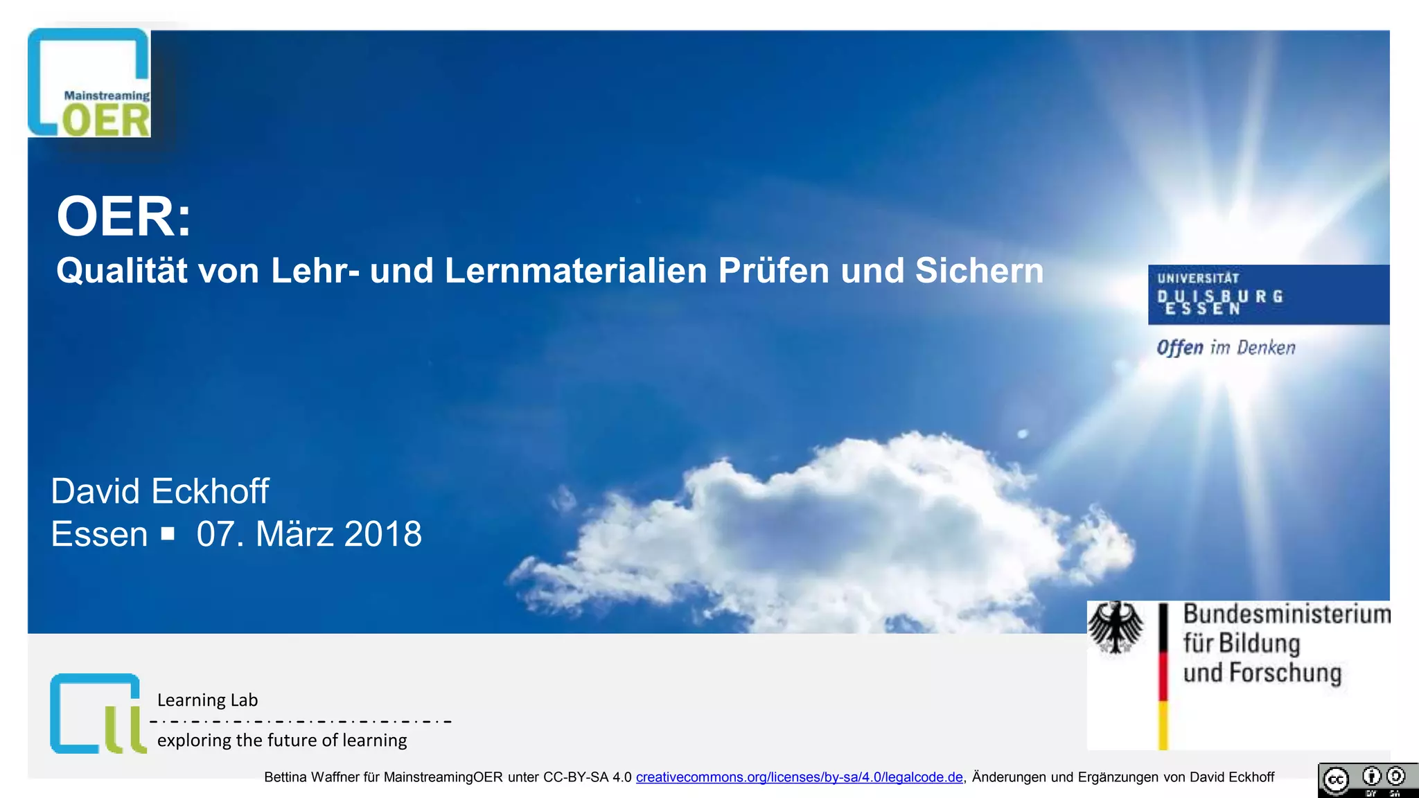 Das Dokument behandelt die Qualitätsprüfung und Sicherung von Open Educational Resources (OER) und thematisiert die Bedeutung von OER im digitalen Bildungswandel. Es beschreibt verschiedene Arten von Lehr- und Lernmaterialien, die unter offenen Lizenzen veröffentlicht werden, sowie die Kriterien, die diese Materialien erfüllen müssen, um als qualitativ wertvoll zu gelten. Darüber hinaus wird auf die Herausforderungen eingegangen, die mit der Nutzung von OER verbunden sind, und es werden praktische Ansätze zur Implementierung vorgestellt.