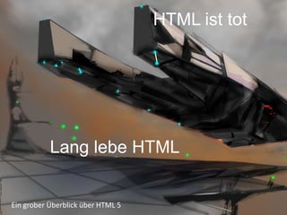 Das Dokument gibt einen umfassenden Überblick über die Entwicklung von HTML, insbesondere über HTML5, und deren neue Funktionen und Merkmale. Es diskutiert die Evolution von HTML von den frühen Versionen bis hin zu XHTML und HTML5, inklusive der Rücksichtnahme auf Kompatibilität, Semantik und Benutzerfreundlichkeit. Schlussendlich wird die Zukunft von HTML5 angesprochen, da viele neue Features bereits von modernen Browsern unterstützt werden.