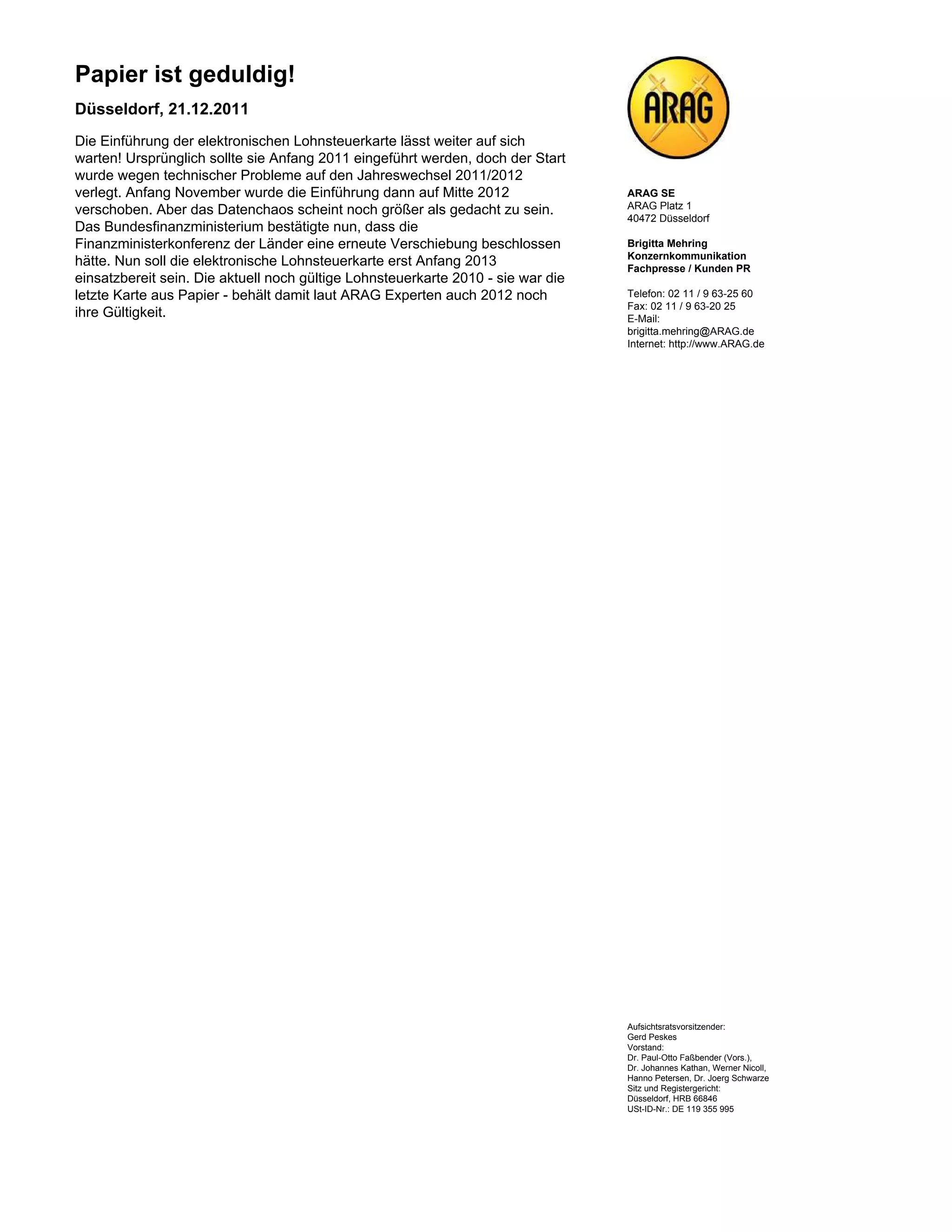 Die Einführung der elektronischen Lohnsteuerkarte wurde mehrfach verschoben und findet nun erst Anfang 2013 statt, nach vorherigen Verzögerungen auf Mitte 2012. Das Bundesfinanzministerium hat die Entscheidung zur erneuten Verschiebung bestätigt, was das bestehende Datenchaos verdeutlicht. Die noch gültige Lohnsteuerkarte von 2010 bleibt auch im Jahr 2012 weiterhin in Kraft.