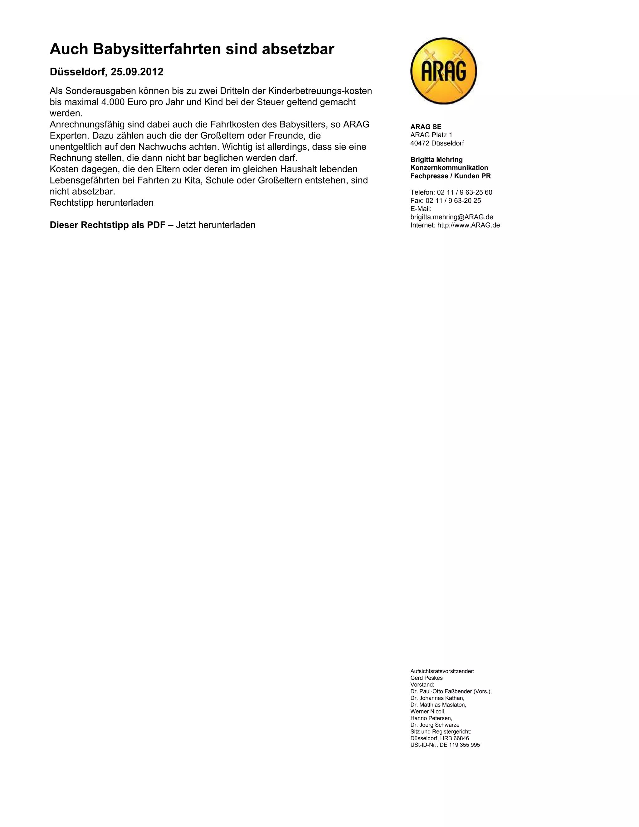 In Düsseldorf können Eltern bis zu zwei Drittel der Kinderbetreuungskosten, maximal 4.000 Euro pro Jahr und Kind, als Sonderausgaben steuerlich absetzen. Dazu zählen auch die Fahrtkosten von Babysittern, Großeltern oder Freunden, solange eine ordnungsgemäße Rechnung vorliegt und die Zahlung nicht bar erfolgt. Kosten für Fahrten zu Kitas, Schulen oder Großeltern sind jedoch nicht absetzbar.