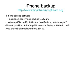 Die iPhone Backup Software ermöglicht das einfache Erstellen von Backups für iPhone-Dateien wie Kontakte, SMS und Musik auf einem Computer. Die Software unterstützt alle iPhone-Modelle, bietet eine benutzerfreundliche Oberfläche und ermöglicht schnelle Backups. Nutzer können iPhone-Kontakte und SMS durch eine einfache Installation und Verbindung mit dem Computer sichern.