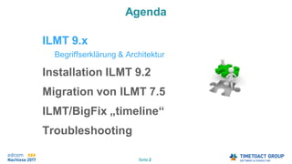 Das Dokument behandelt die Installation und Migration des IBM License Metric Tool (ILMT) 9.x, einschließlich der Anforderungen, Architektur und Lizenzierungsdetails. Es wird erläutert, wie die Verarbeitung von Lizenzmetriken in virtualisierten Umgebungen und die Berechnung der Processor Value Units (PVU) funktioniert. Darüber hinaus werden Schritte zur Einrichtung und Konfiguration des ILMT sowie die Migration von früheren Versionen beschrieben.