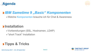 Das Dokument behandelt die Installation und Konfiguration von IBM Sametime Version 9, einschließlich erforderlicher Komponenten, Vorbereitungen und Lizenzierungsunterschieden zwischen 'limited use' und 'standard' Versionen. Es werden spezifische technische Details und Anforderungen für die Einrichtung des Sametime Community Servers sowie die Migration zu LDAP erläutert. Des Weiteren bietet es Hinweise zur Systemumgebung und zu den verschiedenen Serverkonfigurationen für eine erfolgreiche Installation.