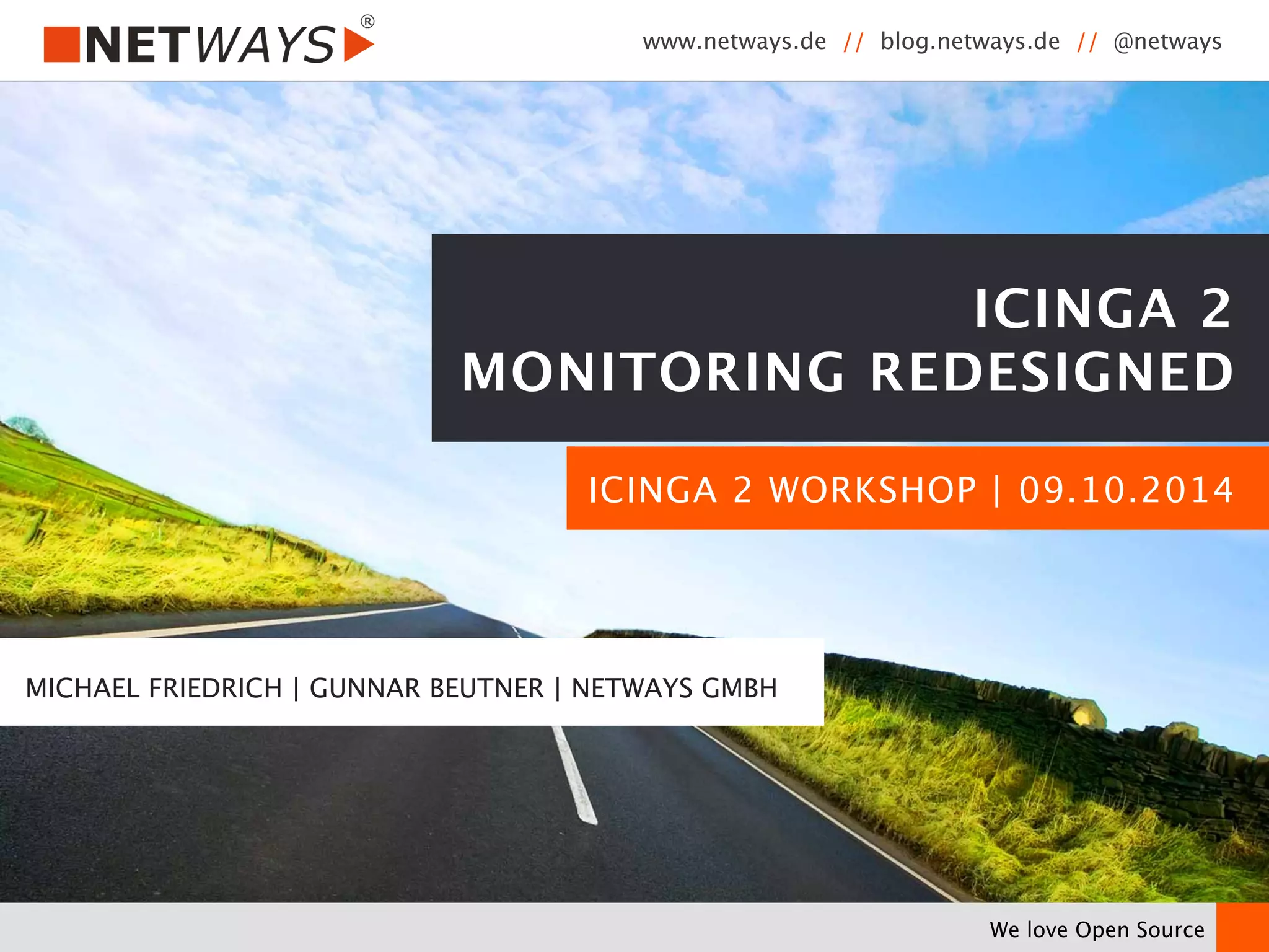 Das Dokument beschreibt Icinga 2, eine Monitoring-Software, die auf C++ basiert und ein neues Konfigurationsformat sowie zahlreiche Funktionen wie Clusterfähigkeit, integrative Gesundheitschecks und flexible Benachrichtigungen bietet. Es wird eine Live-Demonstration und eine Zusammenfassung der neuen Features und Konfigurationen vorgestellt. Zudem werden zukünftige Entwicklungen und Schulungsangebote der Netways GmbH zu Icinga 2 thematisiert.