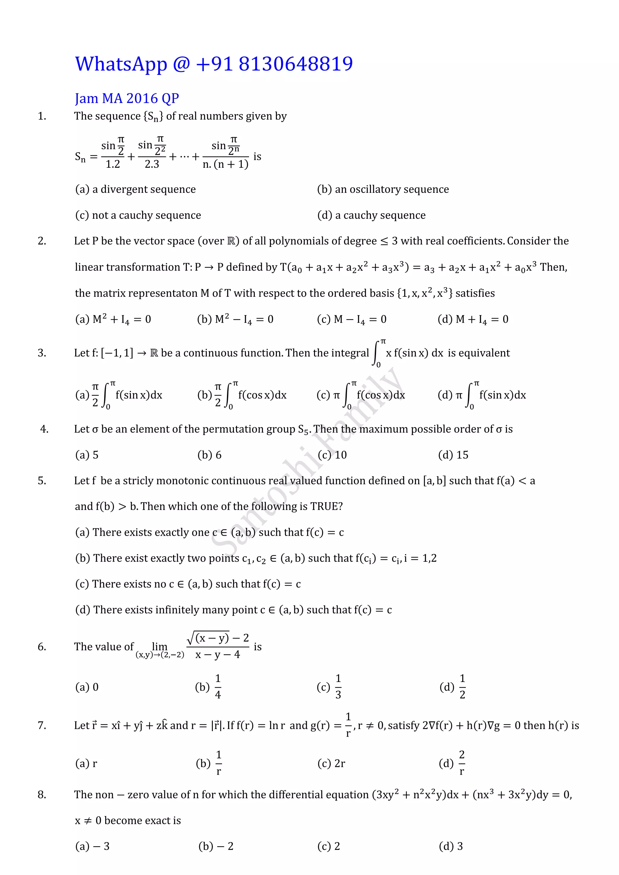 Das Dokument ist ein Antwortschlüssel für eine Mathematikprüfung aus dem Jahr 2016, der verschiedene Fragearten wie Multiple Choice, Multiple Select und numerische Antworten enthält. Jede Frage ist mit der entsprechenden Schlüsselantwort für die jeweiligen Fragenummern aufgeführt. Dabei werden die Punktzahlen für verschiedene Abschnitte angegeben, um die Punkteverteilung zu verdeutlichen.