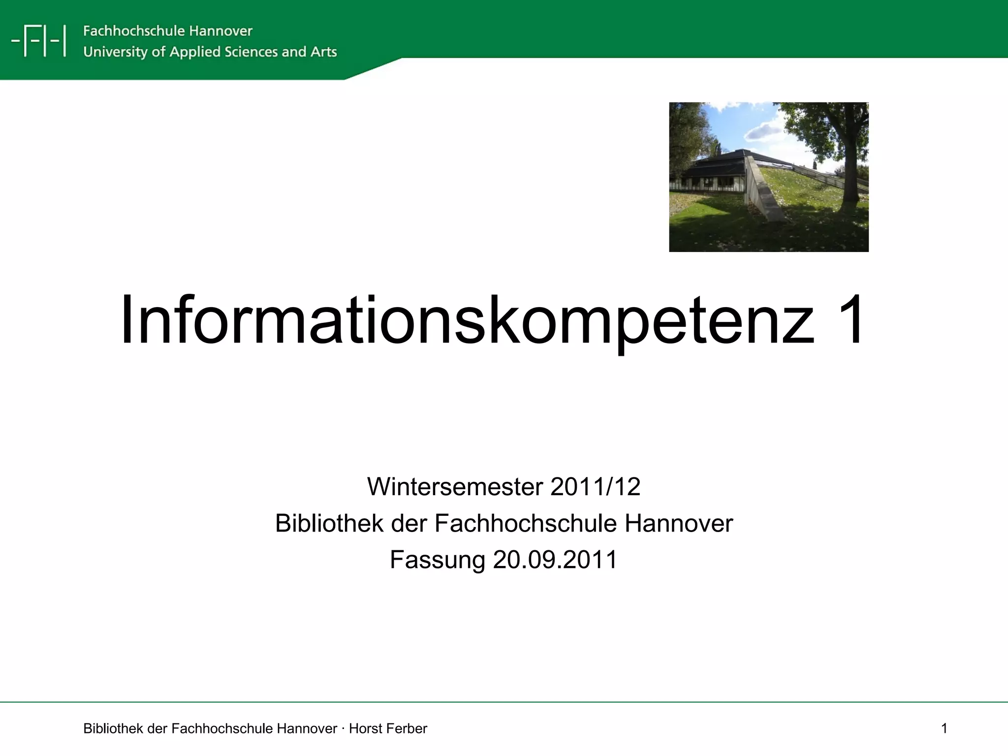 Das Dokument beschreibt ein Seminar zur Informationskompetenz an der Fachhochschule Hannover im Wintersemester 2011/12, das Themen wie Informationsbedarf, Recherchestrategien, Kataloge und Datenbanken umfasst. Es werden verschiedene Ressourcen und Techniken zur Informationsbeschaffung und -bewertung vorgestellt, einschließlich der Nutzung von Bibliothekskatalogen und Datenbanken. Zudem behandelt es rechtliche Aspekte wie Urheberrecht und Zitieren sowie die Bedeutung von Neuerscheinungen und aktuellen Informationen.