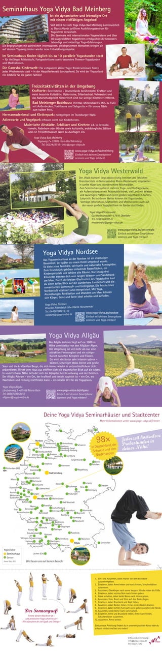 Yoga Vidya ist ein führendes Yoga-Netzwerk in Deutschland, das Yoga und Ayurveda in einer inspirierenden Umgebung anbietet und Seminare sowie Ausbildungen zu erschwinglichen Preisen veranstaltet. Die Einrichtungen bieten eine Vielzahl von Yoga-Kursen, Meditation und Workshops an, einschließlich spezifischer Programmangebote für Kinder und Familien. Das Hauptziel von Yoga Vidya ist es, Yoga für alle zugänglich zu machen und durch eine ganzheitliche und spirituelle Praxis das Wohlbefinden zu fördern.