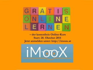 Das Symposium am 23. März 2015 über MOOCS (Massive Open Online Courses) präsentierte imoox, die drittgrößte Universität in der Steiermark, und deren Bildungsangebot für alle. Dabei wurden Daten und Erfahrungen aus mehreren Kursen vorgestellt, die eine hohe Teilnehmerquote und Zufriedenheit aufwiesen, sowie die zukünftige Integration von MOOCS in die Hochschullehre diskutiert. Das Projekt soll zur Standardisierung von Bildungsinnovationen im steirischen Hochschulraum beitragen.