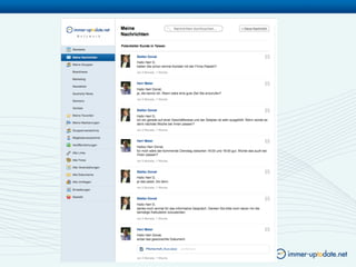 Das Dokument beschreibt, wie Unternehmen durch soziale Medien und cloudbasierte Software die interne Kommunikation optimieren können, um E-Mail-bedingte Probleme zu vermeiden. Es wird betont, dass 'facebook-artige' Kommunikation Vorteile wie Transparenz, schnelle Antworten und kontinuierliche Vernetzung der Mitarbeiter bietet. Zudem wird dargestellt, dass moderne Kommunikation in Unternehmen notwendig ist, um zukünftige Mitarbeiter anzusprechen und die Effizienz zu steigern.