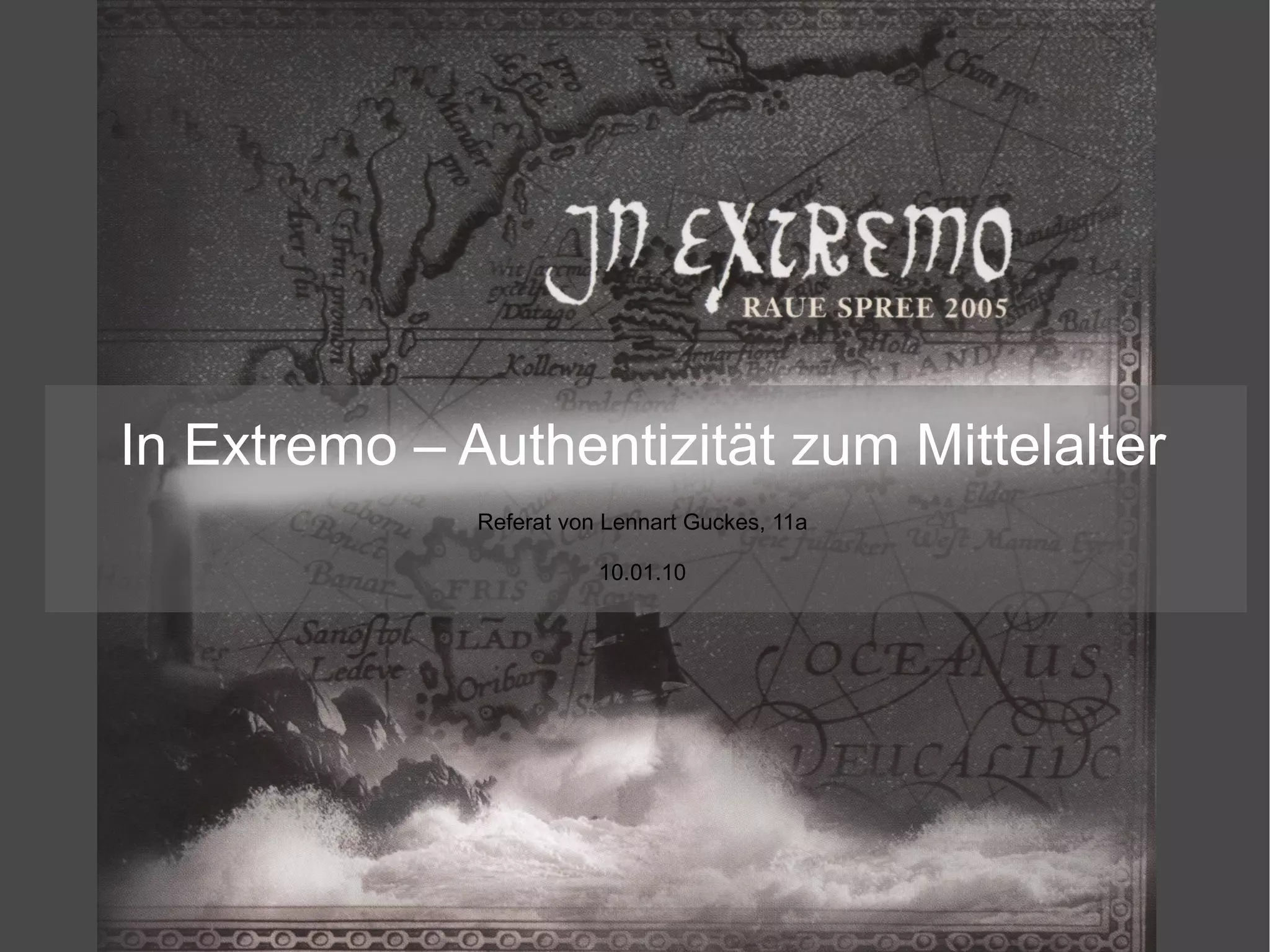 In Extremo ist eine 1995 gegründete Band, die mittelalterliche Musik mit modernem Rock verbindet und insgesamt 13 Alben veröffentlicht hat. Ihr Album 'Sängerkrieg' erreichte Platz 1 der deutschen Albumcharts, und sie sind besonders in Südamerika beliebt. Die Band kombiniert authentische mittelalterliche Elemente wie überlieferte Liedtexte und historische Instrumente mit modernen Rockinstrumenten und imposanten Bühnenshows.
