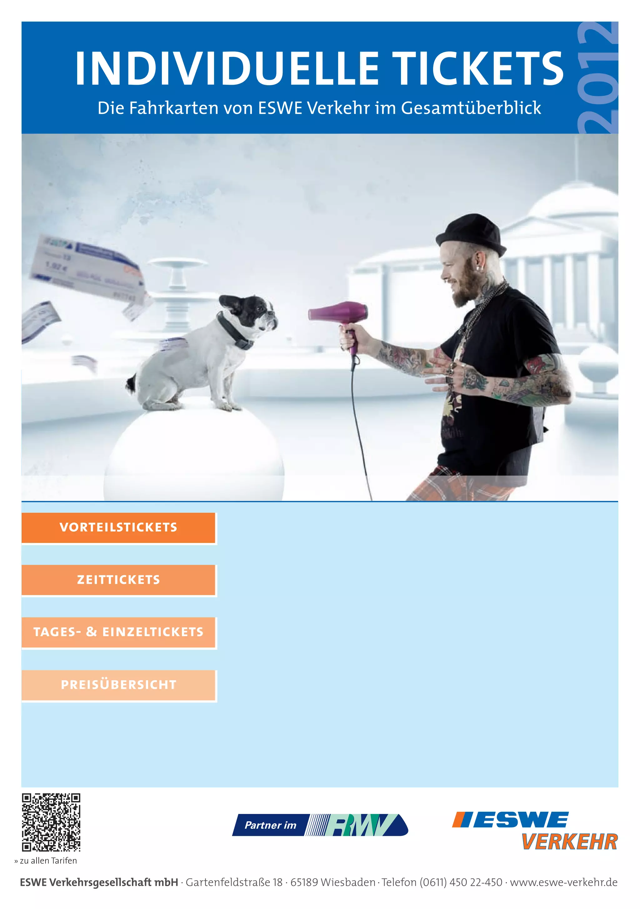 Das Dokument bietet einen Überblick über die verschiedenen Ticketarten der eswe Verkehrsgesellschaft in Wiesbaden, darunter vorteilhafte Abonnements, Zeit- und Einzeltickets, die für verschiedene Nutzerbedürfnisse geeignet sind. Es werden Vorteile und Bedingungen erläutert, wie z.B. die Nutzung des elektronischen Fahrausweises, die kostenlose Mitnahme von Kindern sowie Rabatte bei häufigeren Fahrten. Zudem wird auf die Gültigkeit der Tickets im Rhein-Main-Gebiet und die Unterstützung durch die Servicegarantie hingewiesen.