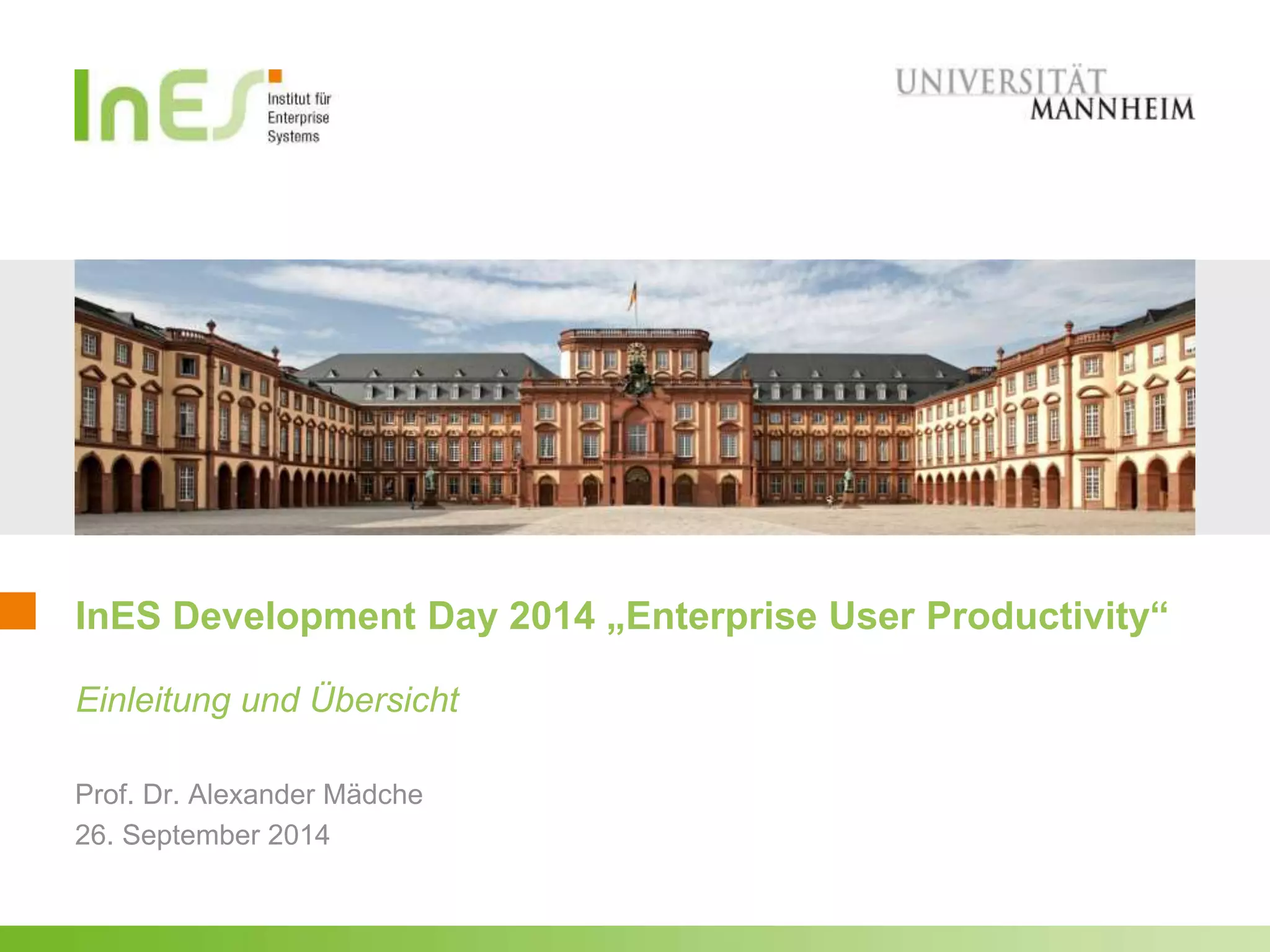 Der INES Development Day 2014 thematisierte die Produktivität von Unternehmenssoftware und die Schnittstellen zwischen Wissenschaft und Praxis, präsentiert durch das Institut für Enterprise Systems (INES) der Universität Mannheim. Das Institut erforscht den Lebenszyklus von Enterprise Systems und entwickelt innovative Lösungen in interdisziplinären Bereichen wie benutzerzentrierte Softwareentwicklung und datengestützte Systeme. Im Rahmen des Events wurden verschiedene Projekte und Aktivitäten vorgestellt, die den Dialog zwischen Wissenschaft und Praxis fördern sollen.