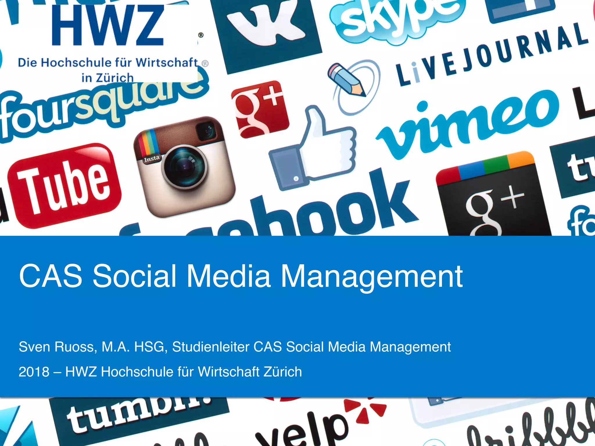 Das Dokument informiert über den CAS Social Media Management an der HWZ Hochschule für Wirtschaft Zürich, der von Sven Ruoss geleitet wird und ab August 2018 startet. Der Kurs beinhaltet verschiedene Module, unter anderem zur Zielsetzung, Überwachung und Optimierung von Social Media Strategien, sowie Leistungsnachweise durch schriftliche Arbeiten und mündliche Prüfungen. Es gibt eine maximale Teilnehmerzahl von 26 Personen, und die Anmeldung sollte frühzeitig erfolgen, da einige Kurse bereits ausgebucht sind.