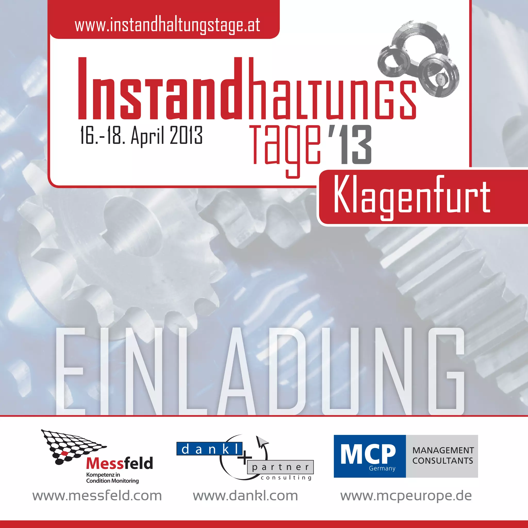 Die Instandhaltungstage 2013 finden vom 16. bis 18. April in Klagenfurt statt, wo Experten aktuelle Themen und Trends in der Instandhaltung diskutieren. An mehreren Tagen werden Fachtrainings und Workshops zu Themen wie Kennzahlen, Arbeitsvorbereitung und Innovationen in der Instandhaltung angeboten. Die Teilnahme an den Vorträgen am Kongresstag ist kostenlos, eine Anmeldung ist jedoch erforderlich.