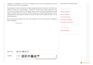 Das Dokument beschreibt die zunehmende Bedeutung von sozialen Medien für Unternehmen, um eine interaktive Beziehung zu ihren Kunden aufzubauen. Es betont die Notwendigkeit, ein professionelles Profil zu erstellen, regelmäßige Aktualisierungen vorzunehmen und auf Kundenanfragen zeitnah zu reagieren. Zudem wird empfohlen, Mitarbeiter in Netiquette zu schulen und höflich mit Kritik umzugehen.