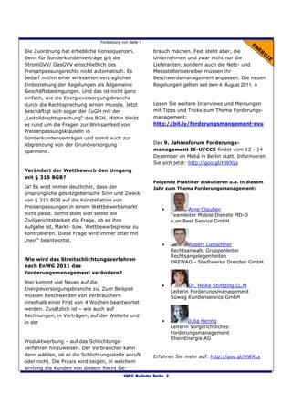 Der erste IQPC Bulletin informiert über das Prozessmanagement in der Energieversorgungsbranche und die Herausforderungen des Forderungsmanagements. Es hebt wichtige Fragen zur Effizienz von Geschäftsprozessen hervor und kündigt bevorstehende Konferenzen und Workshops an, in denen Experten aktuelle Entwicklungen diskutieren werden. Zudem werden gesetzliche Veränderungen und deren Auswirkungen auf die Kundenbetreuung thematisiert.