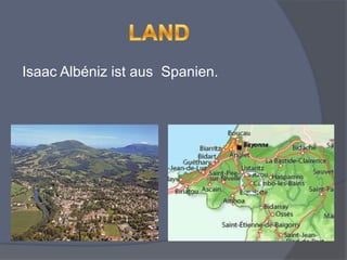Isaac Albéniz war ein spanischer Komponist und Pianist, geboren 1860 in Camprodón und gestorben 1909 in Frankreich im Alter von 49 Jahren. Er war ein Vertreter der romantischen Musik und arbeitete in Barcelona. Seine berühmten Werke umfassen unter anderem 'Granada' für Gitarre und Klavier.