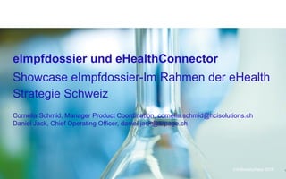 Das Dokument beschreibt das Projekt 'eimpfdossier' im Rahmen der eHealth-Strategie der Schweiz, das die digitale Erfassung und Verwaltung von Impfdokumenten für Patienten und Ärzte erleichtert. Durch die Zusammenarbeit von HCI Solutions und Meineimpfungen.ch wird ein elektronischer Impfstatus etabliert, der den Zugriff und die Aktualisierung der Impfungen per Knopfdruck ermöglicht. Es werden Anwendungsfälle und den Entwicklungsstand des eHealth Connectors vorgestellt, um die Integration in bestehende Praxissysteme zu fördern.
