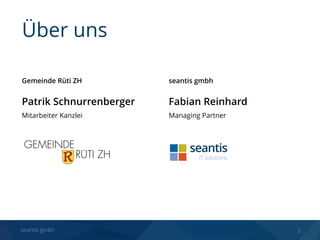 Die seantis GmbH bietet die OneGov Cloud als eine Plattform für Gemeinden an, die e-Government-Dienstleistungen ermöglicht und sich auf Transaktionen wie Formulare und Reservierungen konzentriert. Der aktuelle Stand der e-Government-Entwicklung zeigt eine Professionalisierung und einen Fokus auf kosteneffiziente Lösungen, während der neue Webauftritt der Gemeinde Rüti anzeigt, dass moderne Gestaltung, einfache Bedienbarkeit und Datensicherheit Prioritäten sind. Das Projekt wurde erfolgreich umgesetzt, wobei Nutzerfreundlichkeit und exzellente Zusammenarbeit mit seantis hervorgehoben wurden.