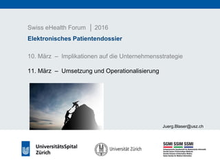 Das Dokument diskutiert die Herausforderungen und Strategien im Bereich der elektronischen Patientendossiers in der Schweiz, einschließlich der Finanzierung, der digitalen Infrastruktur und der Notwendigkeit sinnvoller Geschäftsmodelle. Es wird auf die Rolle des Kantons Zürich und die geplanten Investitionen in die eHealth-Initiativen hingewiesen, die durch eine Anschubfinanzierung aus dem Lotteriefonds unterstützt werden sollen. Zudem werden die Entwicklungen im Bereich Big Data und personalisierte Medizin betrachtet.
