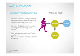 Das Dokument behandelt Strategien zur erfolgreichen Positionierung in App-Stores, insbesondere mit einem Fokus auf die Nutzerzentrierte Navigationssoftware Komoot. Es hebt die Notwendigkeit hervor, Kundenbedürfnisse zu erfüllen und verschiedene Funktionen anzubieten, um ein gutes Nutzererlebnis zu gewährleisten. Außerdem wird die Relevanz von Technologien wie HTML5 und die Vorzüge von nativen und hybriden Apps beschrieben.