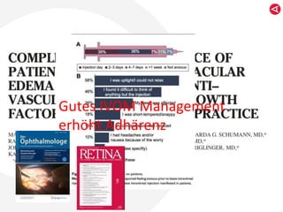 Das Dokument beschreibt Strategien für ein effektives IVOM-Management zur Verbesserung der Patientenadhärenz und -zufriedenheit durch angepasste Terminplanung, Patientenorientierung und Qualitätsmanagement. Wichtige Maßnahmen umfassen Schulungen des Personals, regelmäßige Feedbacks von Patienten und ein Rückrufsystem zur Terminoptimierung. Ziel ist es, die Besucherzufriedenheit und die Effizienz der Abläufe in der Behandlung von IVOM-Patienten zu steigern.