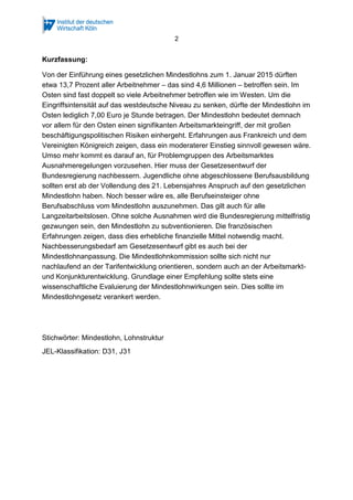 Das Mindestlohngesetz, das am 1. Januar 2015 in Deutschland in Kraft tritt, betrifft etwa 13,7 Prozent der Arbeitnehmer, wobei die Auswirkungen im Osten erheblicher sind als im Westen. Kritiker warnen vor möglichen Beschäftigungseinbußen und fordern Ausnahmeregelungen für bestimmte Gruppen, wie Berufseinsteiger und Langzeitarbeitslose. Zudem wird vorgeschlagen, dass die Anpassung des Mindestlohns an die Arbeitsmarktentwicklung und eine wissenschaftliche Evaluierung gebunden werden sollte.