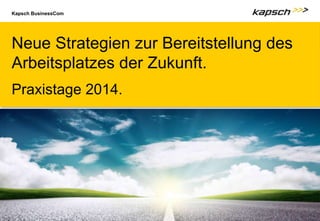 Das Dokument von Kapsch Businesscom präsentiert neue Strategien zur Bereitstellung des Arbeitsplatzes der Zukunft, mit einem Fokus auf mobile Arbeitsumgebungen und individuelle Anpassungsmöglichkeiten. Es beschreibt Veränderungen im Konsumentenverhalten und fordert Unternehmen auf, sich an diese Anpassungen zu orientieren, während Technologien wie 3D-Druck und mobile Apps integrale Bestandteile neuer Geschäftsmodelle werden. Außerdem wird die Notwendigkeit betont, flexible, soziale und eigenverantwortliche Arbeitsplätze zu schaffen, die sowohl physisch als auch digital optimiert sind.