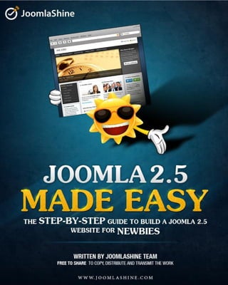 Das Dokument "Joomla 2.5 leicht gemacht" bietet eine umfassende Einführung in das Content Management System Joomla, einschließlich seiner Grundlagen, Installation und Funktionsweise. Es erklärt die Hauptkomponenten von Joomla wie Artikel, Kategorien, Medien, Menüs und Erweiterungen sowie deren Verwaltung. Ziel ist es, den Nutzern zu helfen, effektiv Webseiten mit Joomla zu erstellen und zu verwalten.