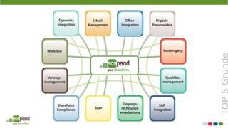 Das Dokument präsentiert eine Lösung zur vollständigen Integration von Enterprise Content Management (ECM) mit SharePoint, um aktuelle Herausforderungen wie steigende Informationsmengen und dezentrale Teams zu bewältigen. Es hebt die Vorteile einer harmonisierten Infrastruktur, einfache Verwaltung durch drag & drop sowie Integration von Web- und Cloud-Diensten hervor. Abschließend werden SharePoint und die erweiterte Lösung ecspand als effektives und sicheres ECM-System vorgestellt.
