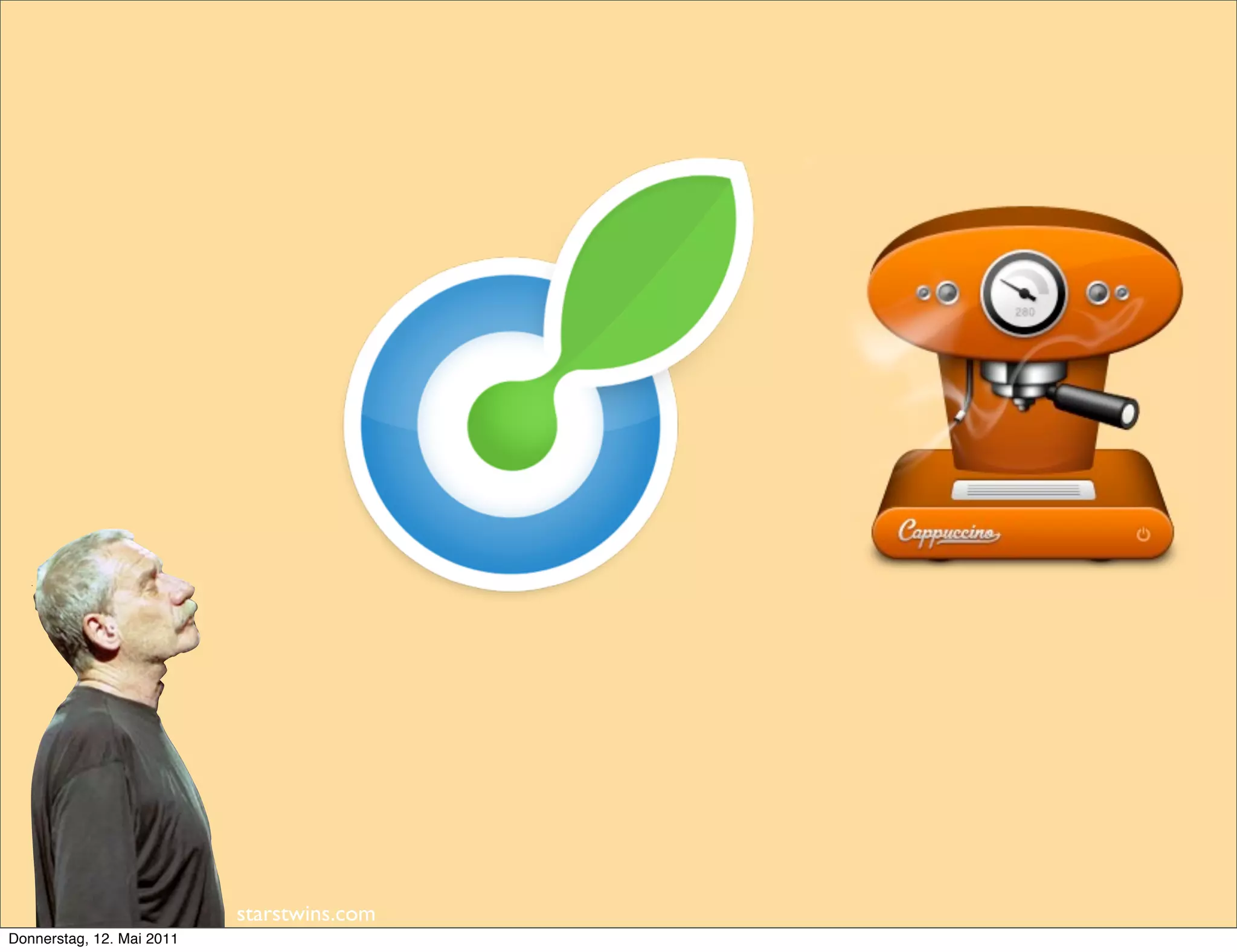 Das Dokument beschreibt eine Präsentation über die Frameworks Cappuccino und SproutCore, die Entwicklern helfen, Desktop-ähnliche Anwendungen mit Objective-J und JavaScript zu erstellen. Es enthält Informationen zur Installation, Erstellung neuer Projekte, Benutzeroberfläche, erweiterten Funktionen, Testing und Deployment. Der Vergleich zwischen den beiden Frameworks wird hervorgehoben, während auch die Vorteile für Entwickler, die bereits Erfahrung mit Cocoa-Frameworks haben, betont werden.