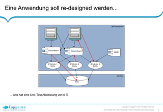 Das Dokument behandelt die Implementierung von JUnit-Tests für JEE-Anwendungen innerhalb eines embedded EJB-Containers, wobei die Tests sowohl für Entwickler als auch auf begrenzten Produktivumgebungen durchführbar sind. Es wird betont, dass die Tests in einer integrierten Umgebung durchgeführt werden, in der alle Module wie in der Produktion verknüpft bleiben, sowie die Notwendigkeit, ein automatisch erzeugtes Datenbankschema vor jedem Testlauf zu erstellen. Abschließend wird auf das Service-Modul 'junithelper' verwiesen, das für die Konfiguration und den Testablauf erforderlich ist.