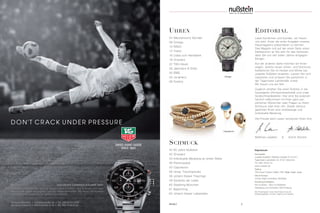 Das Juweliergeschäft Nußstein präsentiert sein erstes Hausmagazin, das Kunden für ihr Vertrauen dankt und ihnen die neuen Uhren- und Schmuckkollektionen für Herbst und Winter vorstellt. Besondere Aufmerksamkeit gilt mechanischen Uhren und deren Handwerkskunst, während das Magazin auch Einblicke in die Uhrmacherwerkstatt und individuellen Beratungsservice bietet. Zudem widmet sich das Magazin der Geschichte und den Innovationen der Uhrenindustrie, einschließlich der Herausforderungen durch die Quarzkrise.
