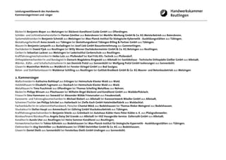 Das Dokument listet die Kammersiegerinnen und -sieger des Leistungswettbewerbs des Handwerks in verschiedenen Berufen, darunter Maßschneider, Friseure, Mechaniker und viele andere. Für jeden Gewinner werden der Name, der Wohnort und der Ausbildungsbetrieb angegeben. Die Gewinner stammen aus verschiedenen Regionen und Berufen, was die Vielfalt der handwerklichen Ausbildungsberufe widerspiegelt.
