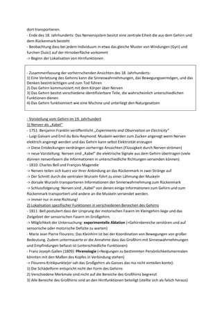 Das Dokument bietet einen umfassenden Überblick über die Geschichte und Entwicklung der Neurowissenschaften, beginnend von antiken Theorien des Gehirns bis hin zu modernen biologischen und psychologischen Ansätzen. Es beschreibt die Evolution des Verständnisses der Gehirnstrukturen, die Einführung der neuronalen Theorie sowie die Methoden der heutigen neurowissenschaftlichen Forschung. Außerdem werden ethische Fragen im Zusammenhang mit Tierversuchen und bedeutende neurologische Erkrankungen behandelt.