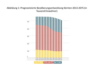 Das Dokument beleuchtet die prognostizierte Bevölkerungsentwicklung in Kärnten zwischen 2013 und 2075, die auf einen deutlichen Rückgang hinweist. Es enthält demografische Veränderungen der Bevölkerung sowie Daten zu den 18 am starksten schrumpfenden Gemeinden. Darüber hinaus werden die Einflüsse von Zu- und Wegzügen auf die Bevölkerungsentwicklung zusammengefasst.