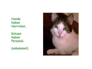Das Dokument enthält vielfältige Zitate und Gedanken über Katzen, die ihre geheimnisvolle und einzigartige Natur betonen. Es wird die besondere Beziehung zwischen Katzen und Menschen hervorgehoben, wobei Katzen als unabhängige und majestätische Wesen dargestellt werden. Viele Zitate thematisieren das Bewunderung und die Wertschätzung, die Katzenliebhaber für ihre Tiere empfinden.