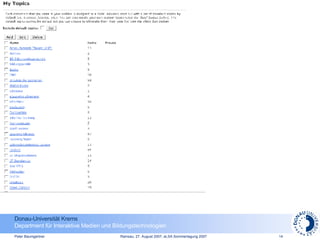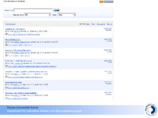 Das Dokument diskutiert die Rolle von E-Learning in Schulen, betont die Notwendigkeit aktiver Teilnahme und koordinierter Kommunikationsstrukturen im Lernprozess und hebt die Wichtigkeit von sozialer Interaktion hervor. Es wird darauf hingewiesen, dass soziale Software den Austausch und die Zusammenarbeit fördert und dass Lerninhalte zunehmend in kooperativen Umgebungen erstellt werden können. Die Autoren präsentieren Thesen, die die sozialen Aspekte des Lernens sowie die Integration von sozialen Medien in formale Lehrpläne berücksichtigen.