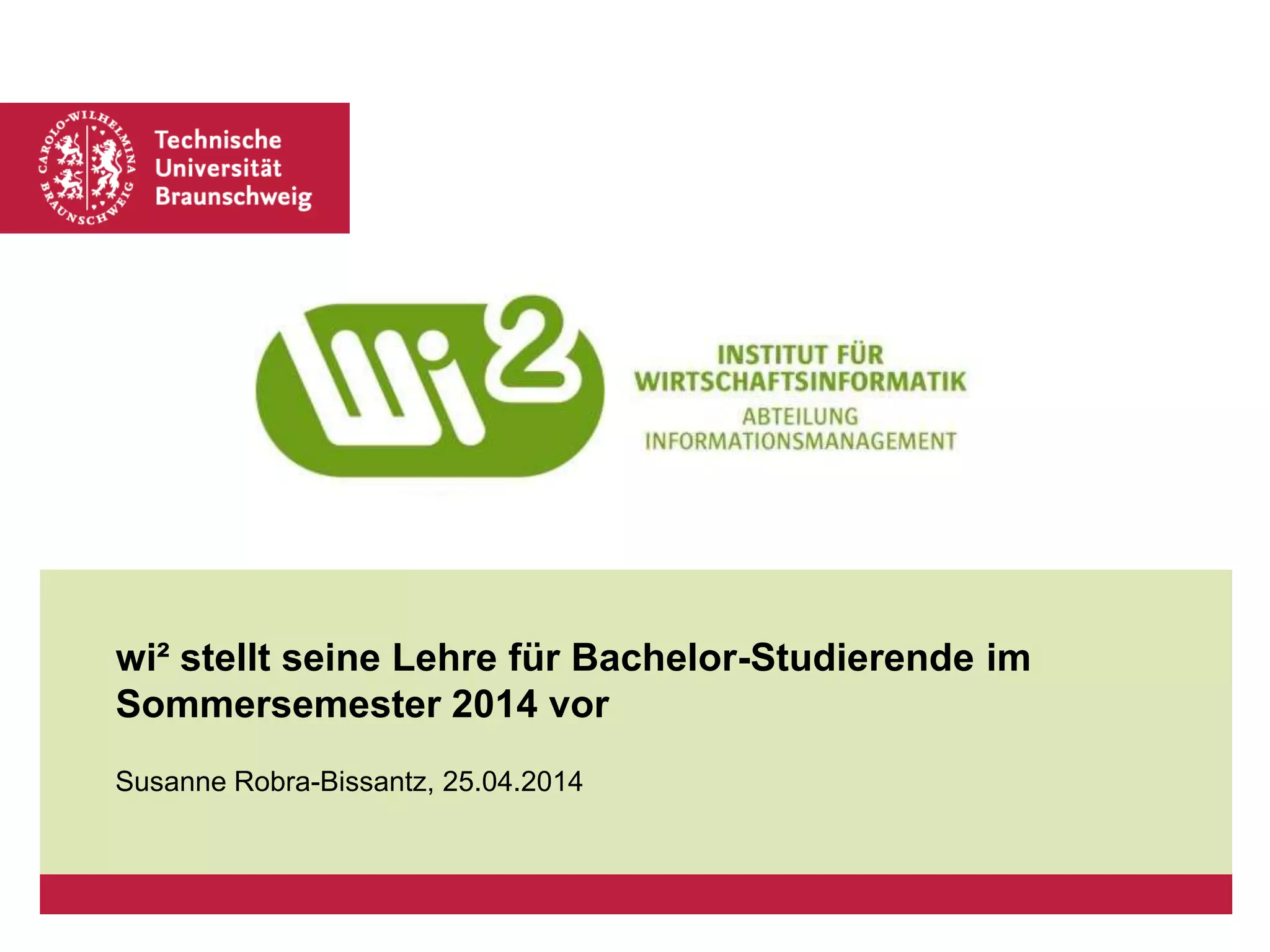 Das Dokument beschreibt das Lehrangebot der Wirtschaftsinformatik (wi2) für Bachelor-Studierende im Sommersemester 2014, einschließlich verschiedener Vorlesungen und Seminare. Schwerpunkte sind e-Services, Anwendungen im Informationsmanagement und die Entwicklung von e-commerce Konzepten. Die Anmeldung zu Seminaren erfolgt über die Plattform stud.ip, und es werden wichtige Termine sowie Veranstaltungen aufgelistet.