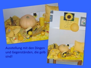Das Projekt 'Unsere bunte Welt' in der Kita Eichenstraße 2011 umfasste eine Ausstellung mit gelben Objekten und verschiedene kreative Techniken wie Kleister- und Fadentechnik. Die Kinder stellten Mischfarbenbilder und bunte Masken her und hatten einen Künstlerbesuch von Michael Pfannschmidt, der Bilder in Anlehnung an Andy Warhol präsentierte. Zudem fand ein Besuch im Museum Ludwig statt.