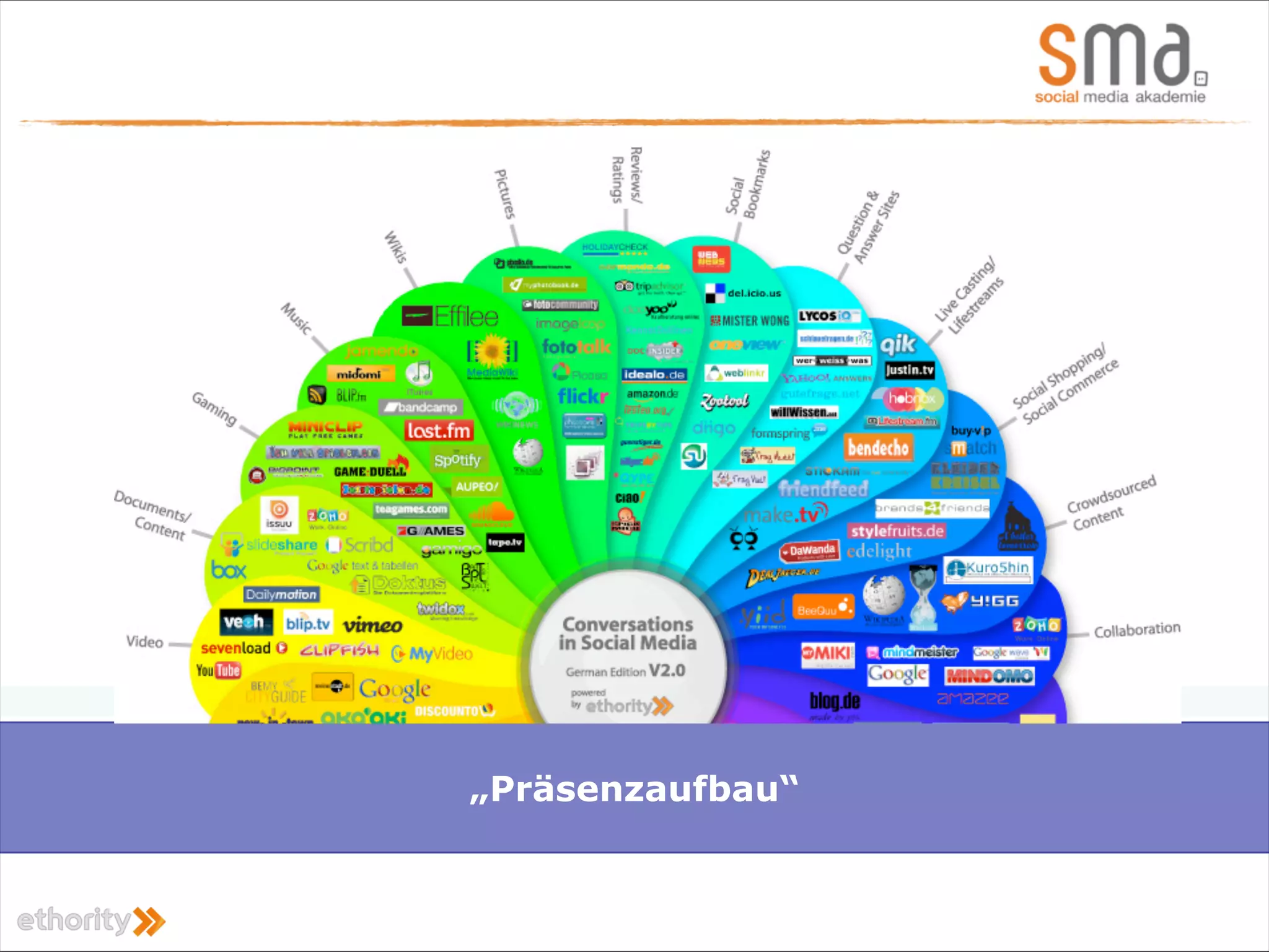 Das Dokument behandelt den Aufbau von Markenpräsenz in Social Media, wobei der Fokus auf Zieldefinition, Content-Strategien und Erfolgsmessung gelegt wird. Es wird die zunehmende Relevanz von Social Media für Unternehmen betont, insbesondere zur Kundenbindung und Markenbildung, sowie die Notwendigkeit, mit Zielgruppen auf Augenhöhe zu kommunizieren. Fallstudien zu erfolgreichen Markteinführungen, wie die von Leica M9 und Windows 7, veranschaulichen praktische Anwendungen von Social Media Strategien.