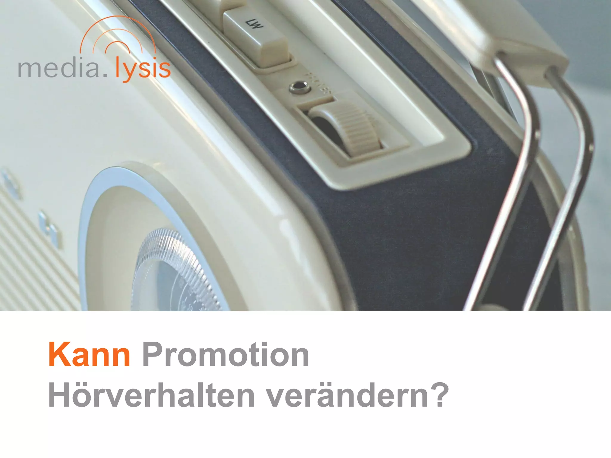 Das Dokument untersucht, wie Promotion das Hörverhalten von Radiohörern, insbesondere während der Morgenshow, beeinflusst. Es werden verschiedene Kennzahlen wie Hörerdichte und Stabilitätsindex dargestellt, die zeigen, dass die Promotion die Hörerbindung und den Anteil der Stammhörer signifikant erhöhen kann. Daten aus mehreren Zeiträumen werden analysiert, um die Auswirkungen von Promotion auf die Hörerzahlen zu verdeutlichen.