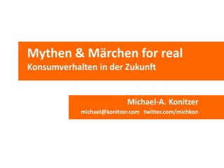 Der Autor Michael-A. Konitzer erörtert zukünftige Konsumverhaltenstrends, die durch technologische Fortschritte wie das Internet der Dinge und personalisierte Services geprägt sind. Er betont, dass Paradoxien in einer liquid modernity die Realität dominieren und unsere Entscheidungen beeinflussen, während Individualismus unter dem Einfluss sozialer Medien leidet. Abschließend werden diverse Zukunftsoptionen wie antizipatorisches Marketing und intelligente Produkte für die Konsumwelt umrissen.