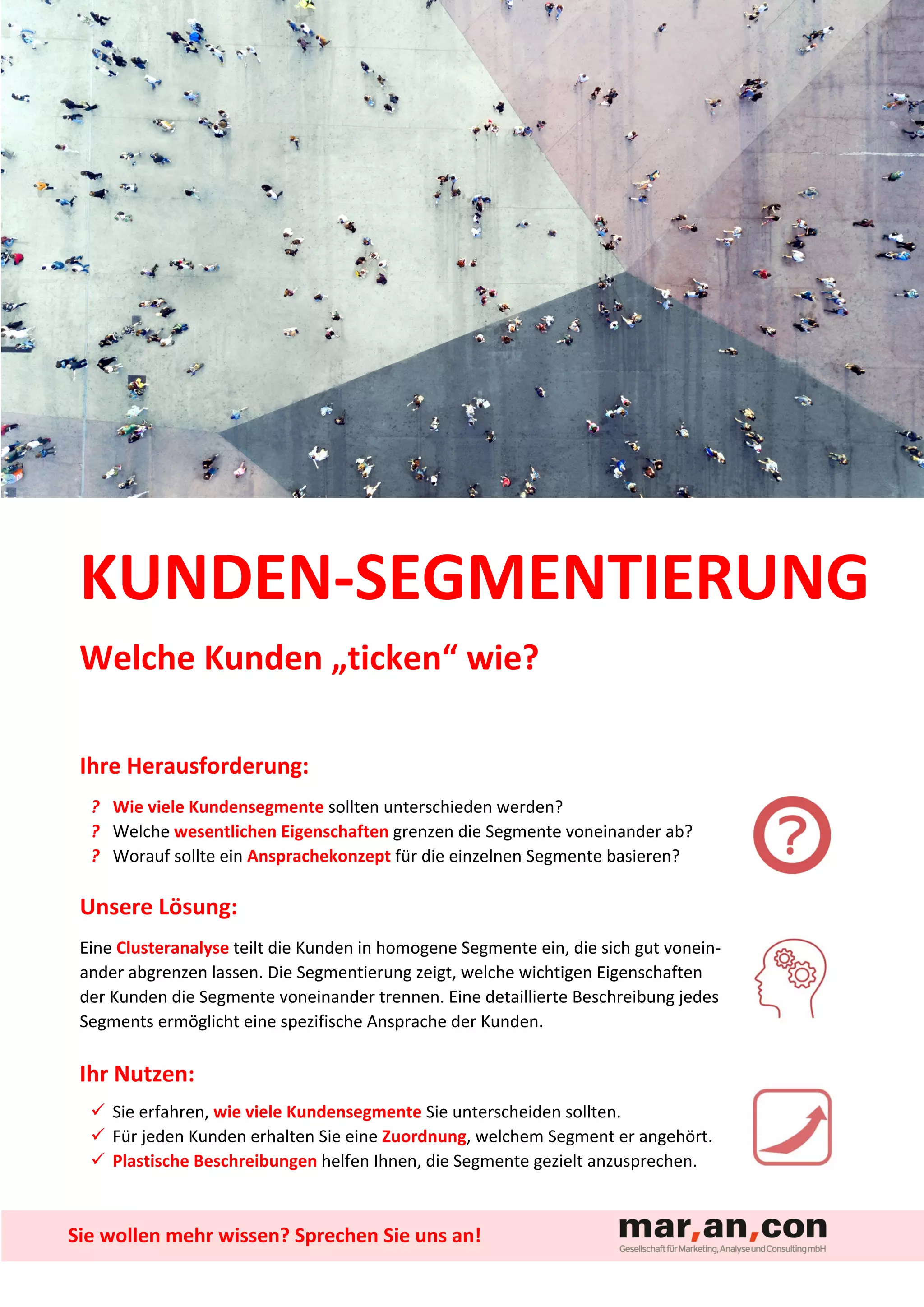 Das Dokument beschreibt eine Methode zur Kundensegmentierung mithilfe einer Clusteranalyse, um homogene Kundengruppen zu identifizieren und geeignete Kommunikationsstrategien zu entwickeln. Es wird erläutert, wie relevante Kundendaten, wie z.B. Kaufhistorie und demografische Informationen, genutzt werden können, um die Segmente effektiv zu definieren und anzusprechen. Ziel ist es, die Marketingeffizienz zu steigern, indem Unternehmen ihre Kunden gezielt entsprechend ihrer spezifischen Merkmale ansprechen.