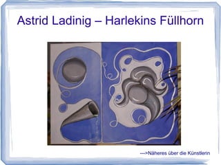 Das Dokument beschreibt ein Kunstprojekt von 2010/2011, bei dem Werke verschiedener Künstler, darunter Astrid Ladinig, Nina Reif und Jovan Malajmare, präsentiert werden. Es listet Details zu den einzelnen Kunstwerken auf, die sowohl Acryl- als auch Aquarelltechniken umfassen, und enthält Informationen zu den jeweiligen Künstlern. Zusätzlich wird ein Musikstück von Zero erwähnt, das zur Atmosphäre des Projekts beiträgt.