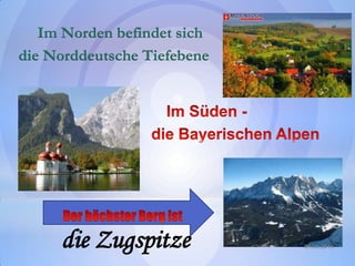 Die deutschen Landschaften sind vielfältig und umfassen unter anderem die Norddeutsche Tiefebene im Norden sowie Gebirgszüge wie den Schwarzwald, den Harz und den Thüringer Wald. Der größte Fluss Deutschlands ist der Rhein, während der Bodensee den größten See darstellt.