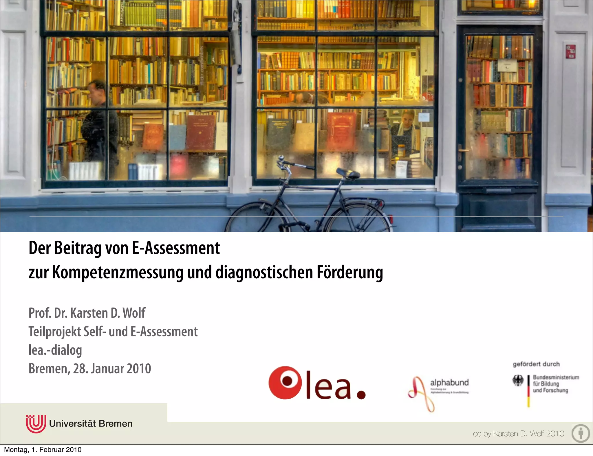 Die Präsentation von Prof. Dr. Karsten D. Wolf behandelt den Beitrag von E-Assessment zur Kompetenzmessung und diagnostischen Förderung, einschließlich der Unterschiede zwischen summativem und formativen Assessment. Sie bietet Beispiele und Vorteile von Rich E-Assessment im Kontext der Alphabetisierung und beschreibt aktuelle Projekte in Bremen. Zudem werden Möglichkeiten zur adaptiven Testung und automatisierten Feedbacksysteme vorgestellt.